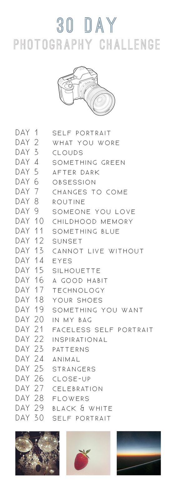 Kedves kirlynk s kirlyfik! rdekel a fotzs titeket s valami kihvsra vgytok? Akkor a ragadjtok meg ezt a kis tblt s ksztstek el ezt a 30 napos fot kihvst. Az tlet nem sajt, a bvebben utn megtalljtok az eredeti angol verzit, n csak magyarra fordtottam, na meg csinltam hozz egy kisebb tblcskt. A kihvs napjai is megtallhatak a bvebbenben, termszetesen az is magyarul. Szval ha nincs tleted, vagy szereted a kihvsokat, akkor vidd, s esetleg linkeld be kommentben az oldalad, hogy Mi is megcsodlhassuk az elkszlt remekmveket!